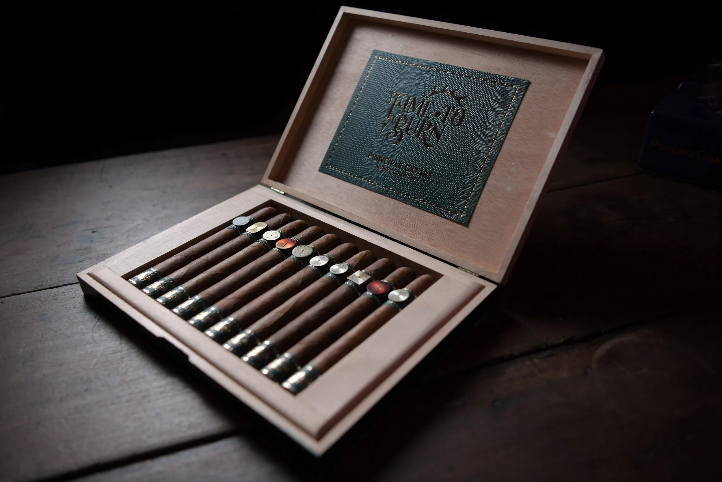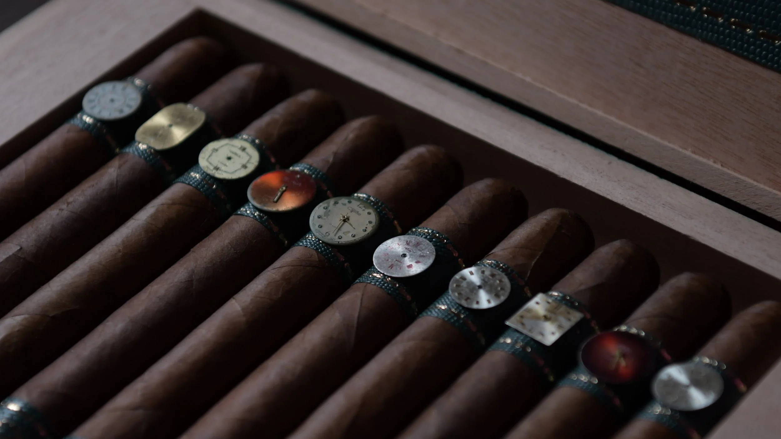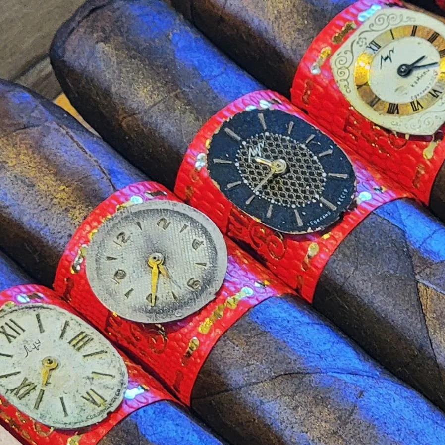 Every Time to Burn cigar is adorned with an original antique watch dial, no two ever the same.